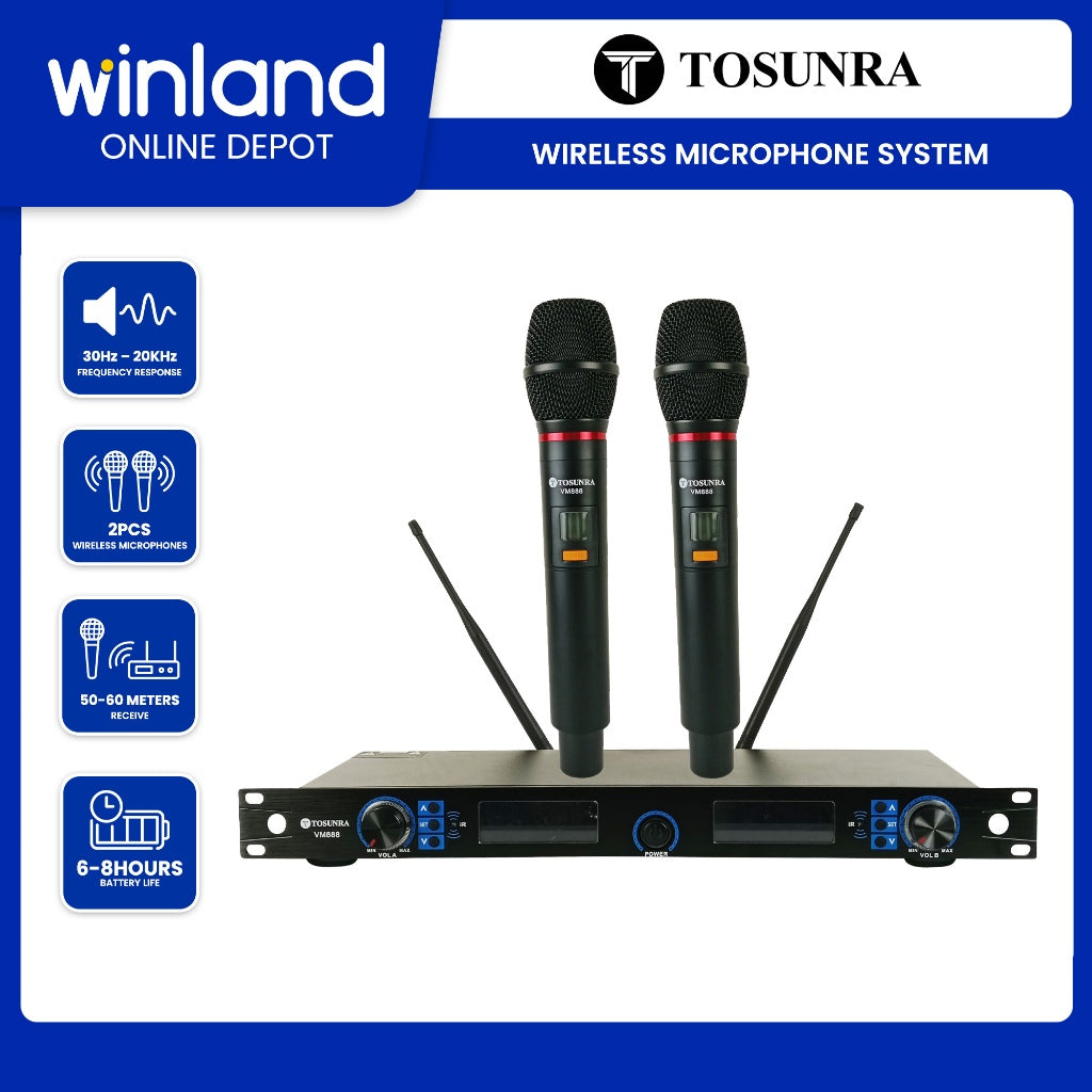 Tosunra TOS-VM888 UHF Wireless Microphone System offers clear and stable sound for any event or performance. It uses UHF technology to reduce interference and