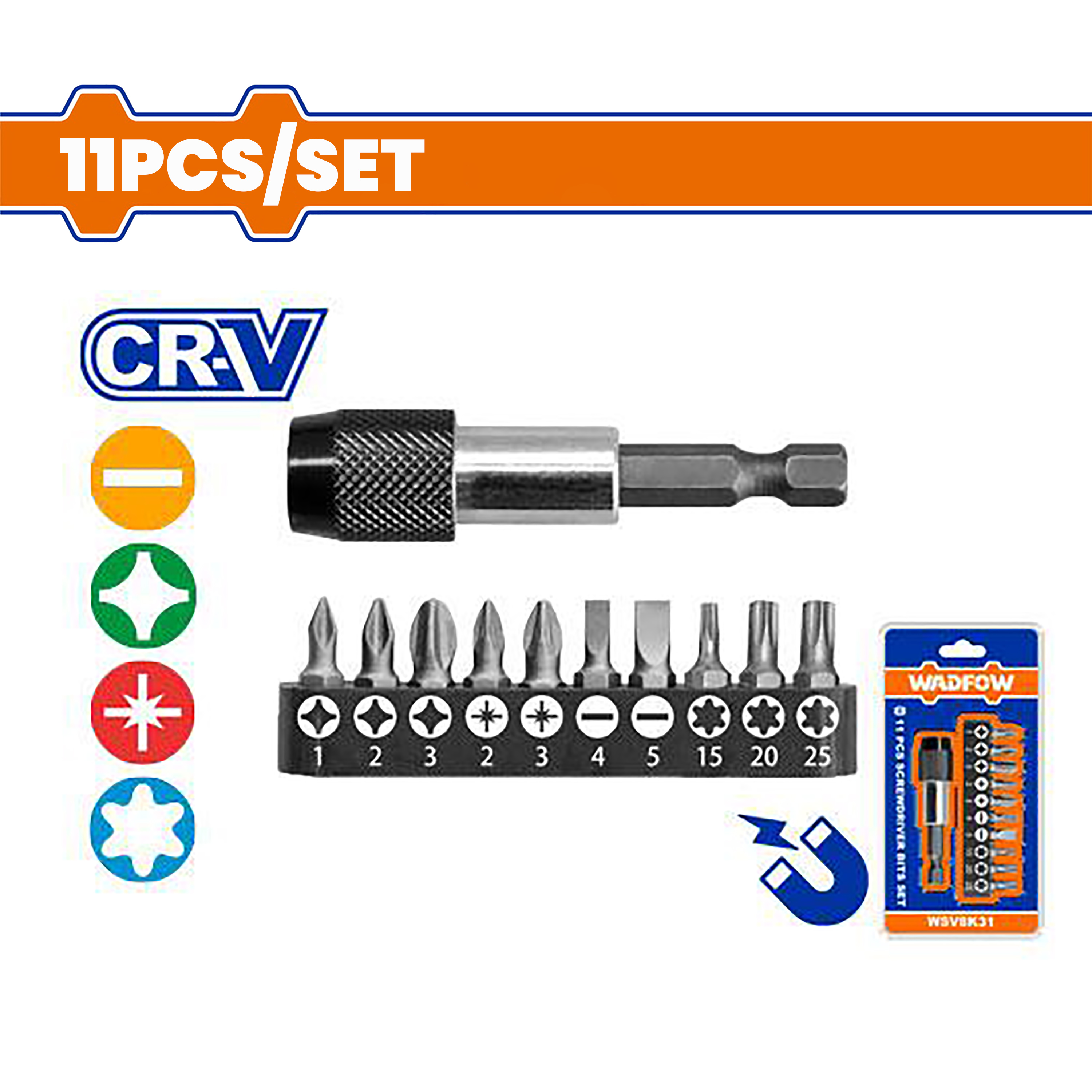 Wadfow by Winland 11PCS/Set Cr-V Material Screwdriver Bits WSV8K31 WAD-HT