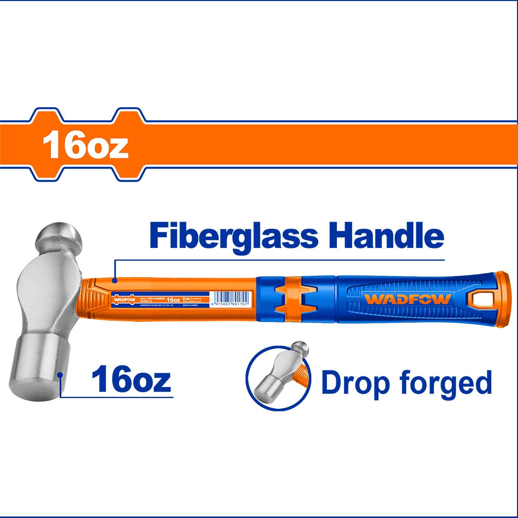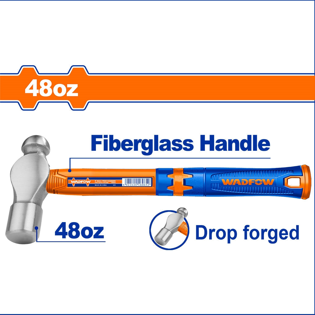 Wadfow Drop-Forged Carbon Steel Hammerhead Ball Pein Hammer With Fiberglass Handle WAD-HT