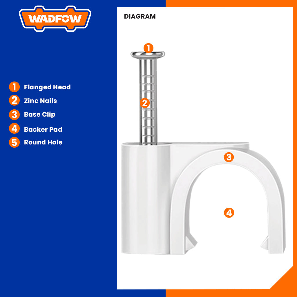 Wadfow WFQ13 Round Plastic Construction and Zinc Plated Nails Cable Clips 100pcs/set